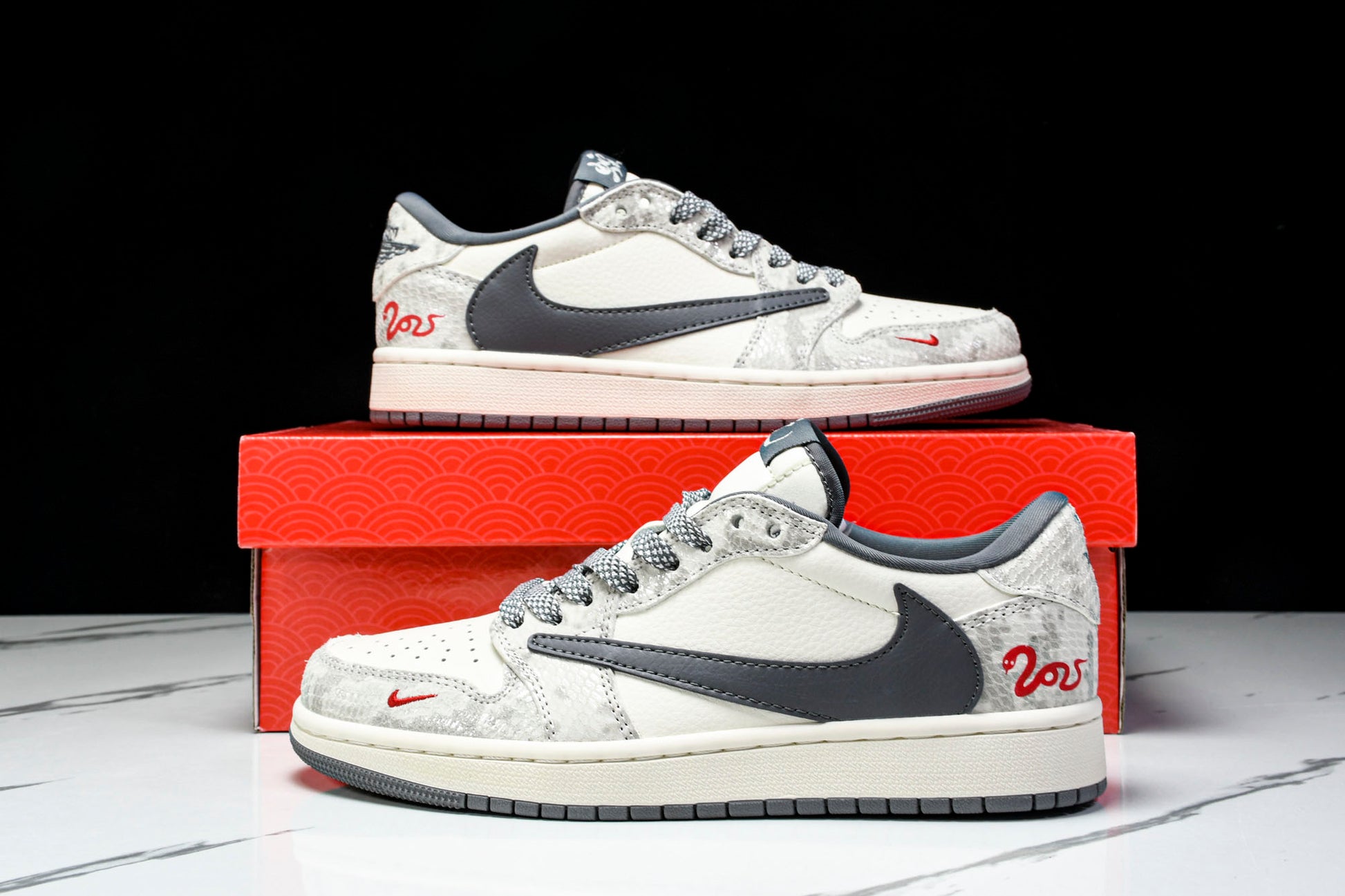 Travis Scott AJ1 Low x Year of The Snake 'White Grey' (Custom)