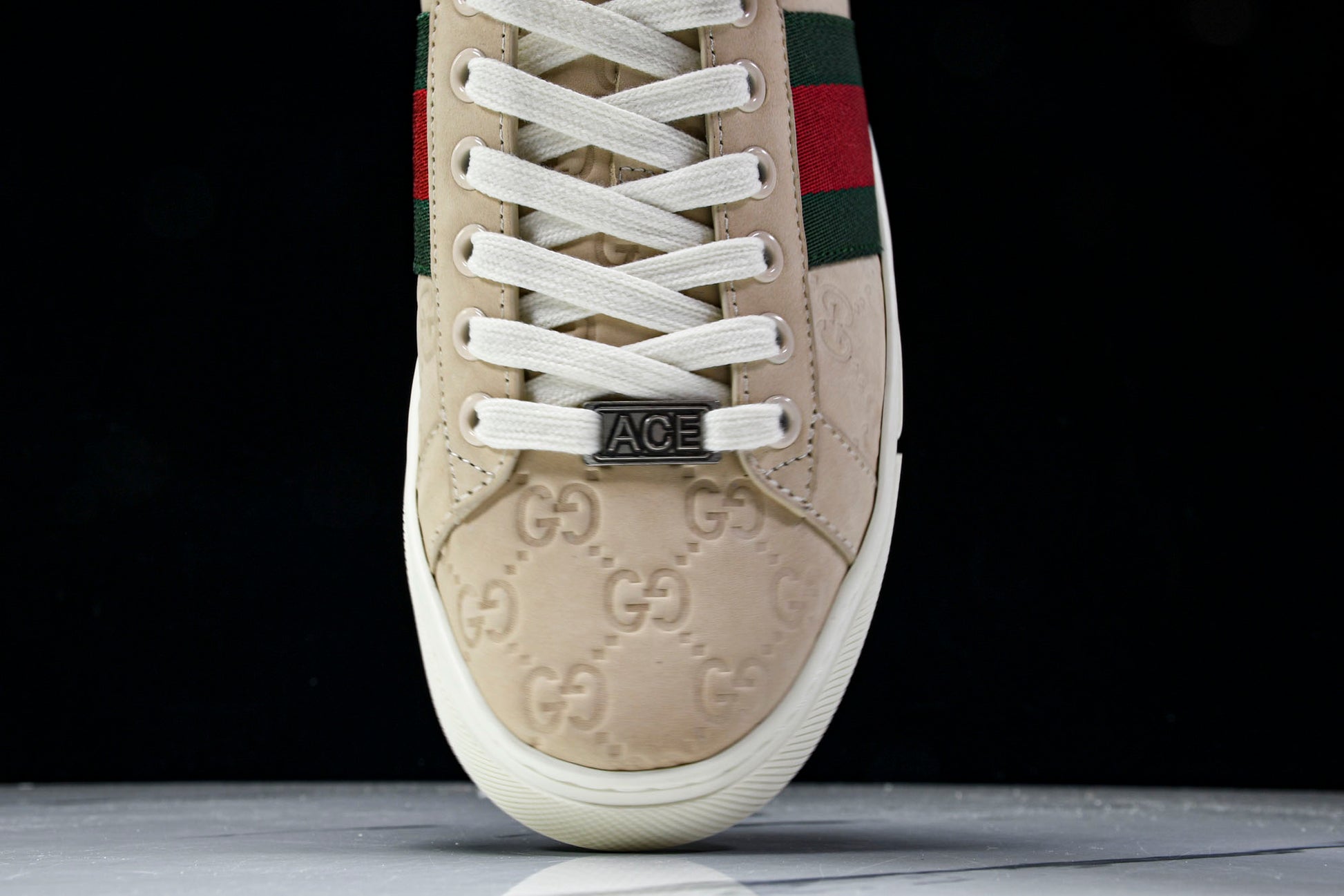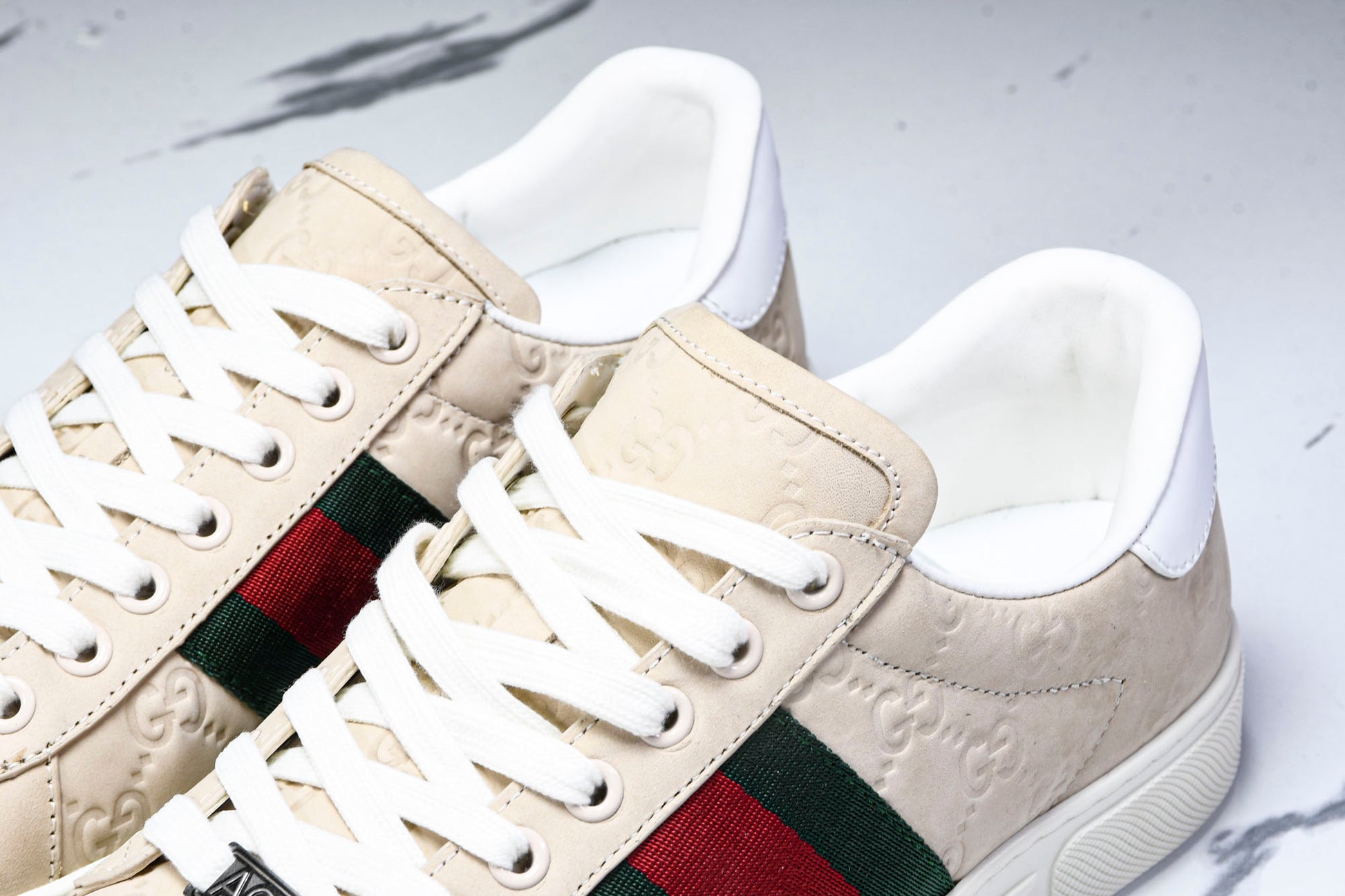 Guссi Ace Web 'Embossed Beige Monogram'