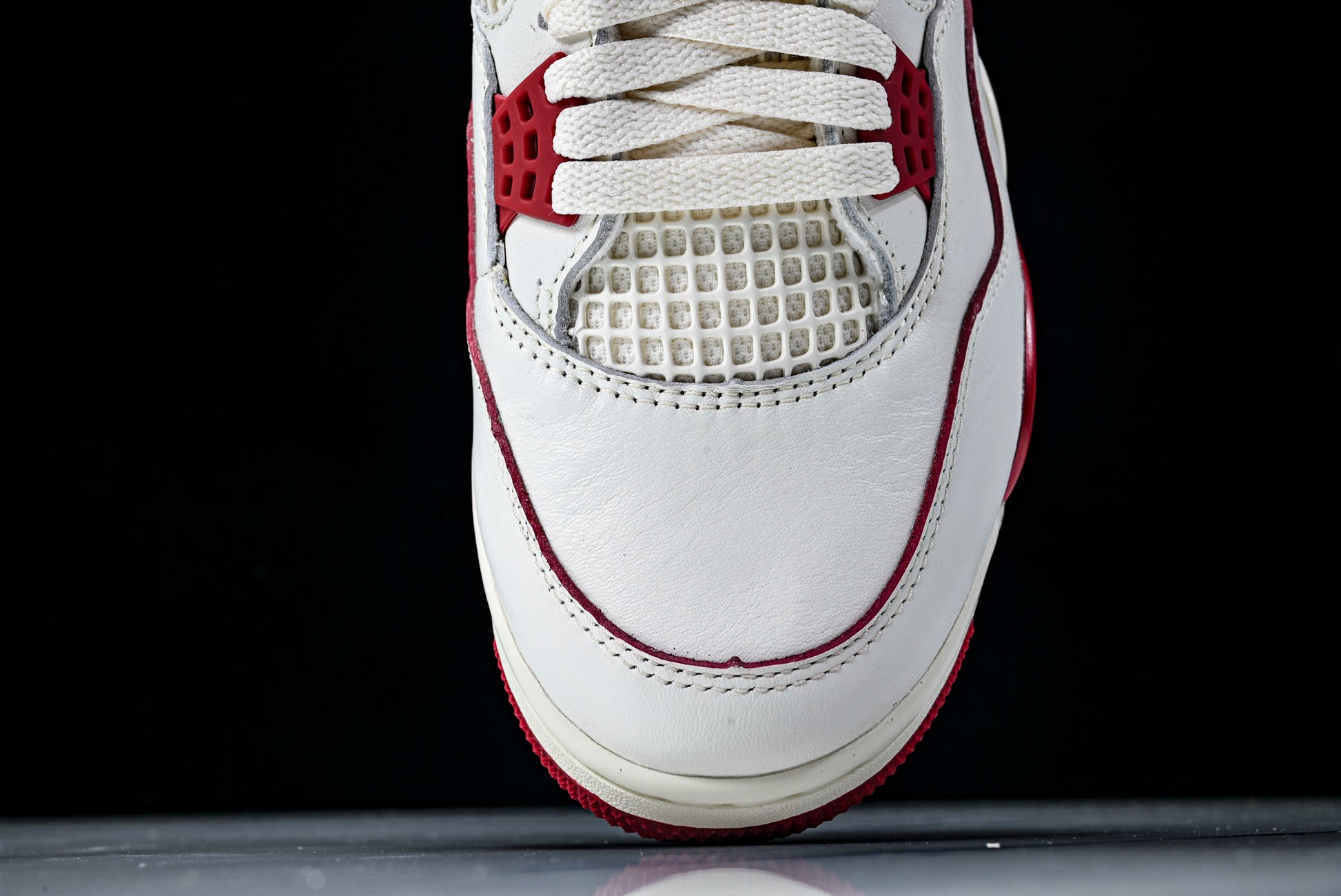 The AJ4 Retro Valentine's Day 'Sierra Red' celebrates the romantic holiday with a graceful and expressive update to the classic silhouette, pairing soft neutral shades with subtle red accents for a balanced, sophisticated look. The pale ivory upper creates a smooth, elevated foundation, giving the sneaker a clean and versatile feel. Meanwhile, touches of sierra red introduce warmth and contrast, adding character without overpowering the design. Together, these elements deliver a thoughtfully crafted pair that blends style, comfort, and everyday wearability.